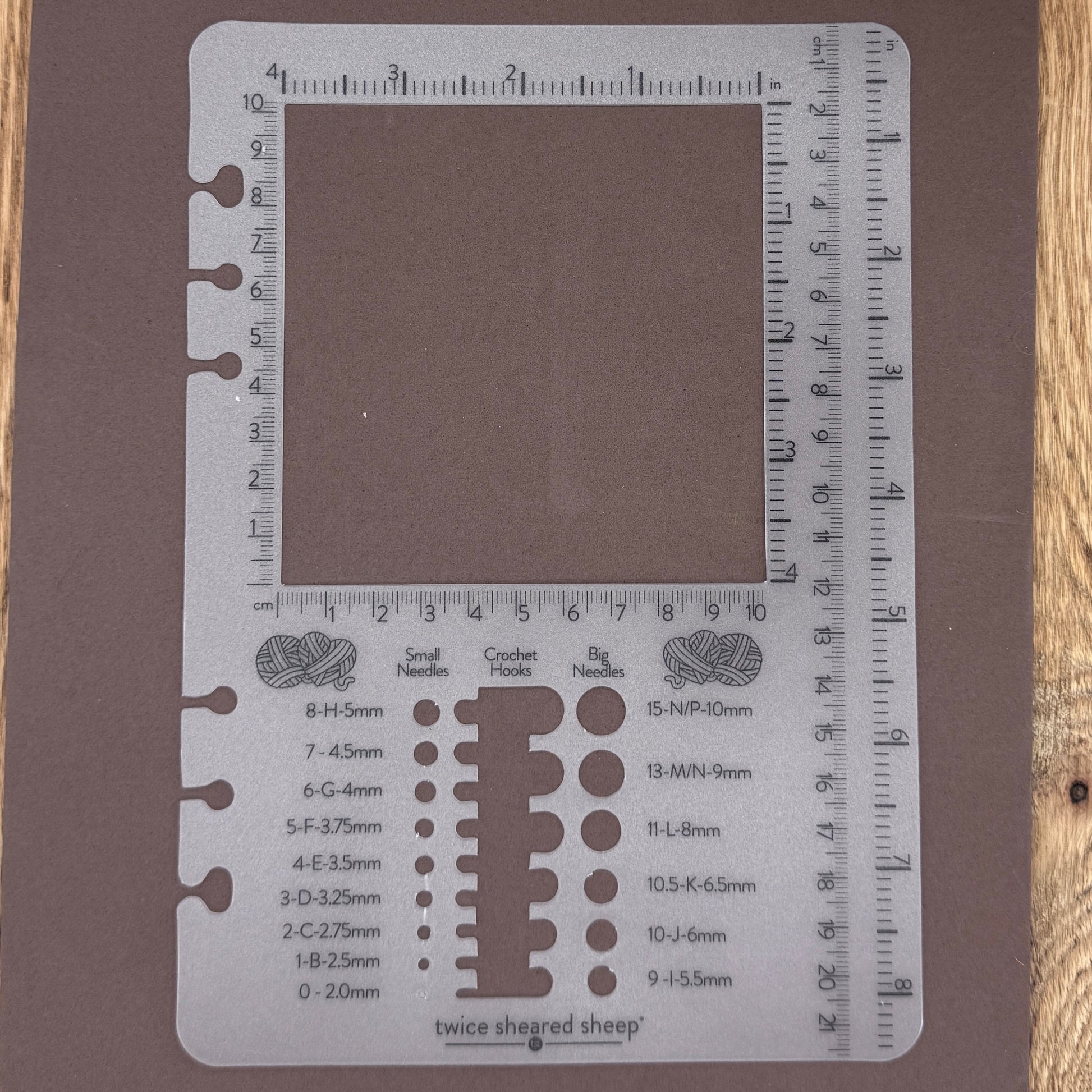 Quickly check your stitch gauge on your project in both knit and crochet.